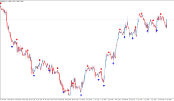 Каждый сигнал инструмента указывает на возможность скорой смены тренда: оранжевая точка говорит про повышение, синяя – понижение цены. Несмотря на хорошую точность и отсутствие перерисовки, индикатор все равно немного запаздывает.